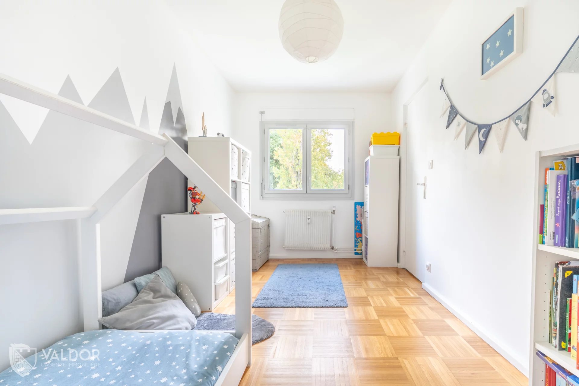 L’espace nuit, bien distinct, est desservi par un couloir avec grand placard. Il comprend trois chambres de belles dimensions, toutes lumineuses et équipées de volets roulants pour une obscurité totale la nuit.