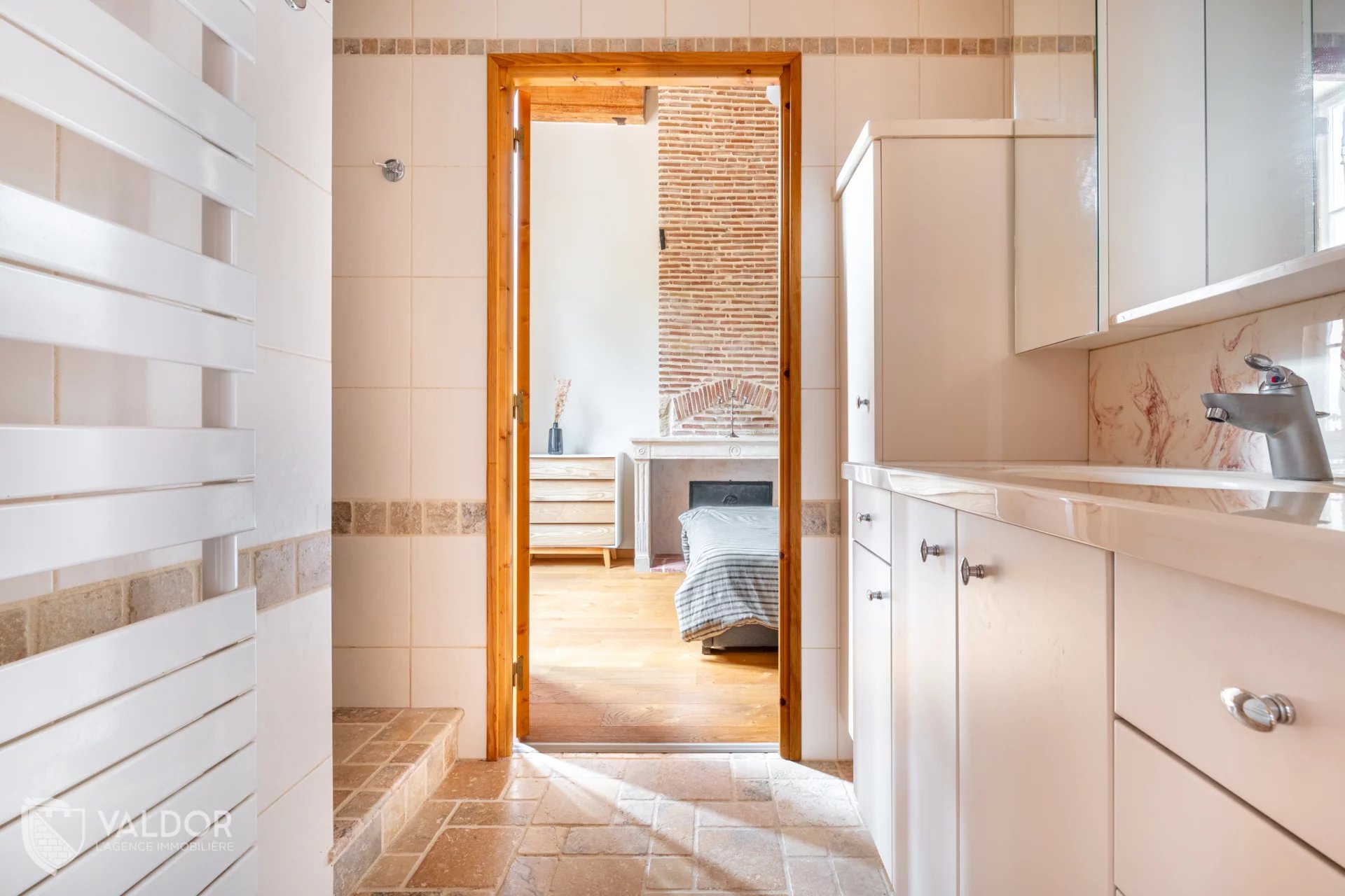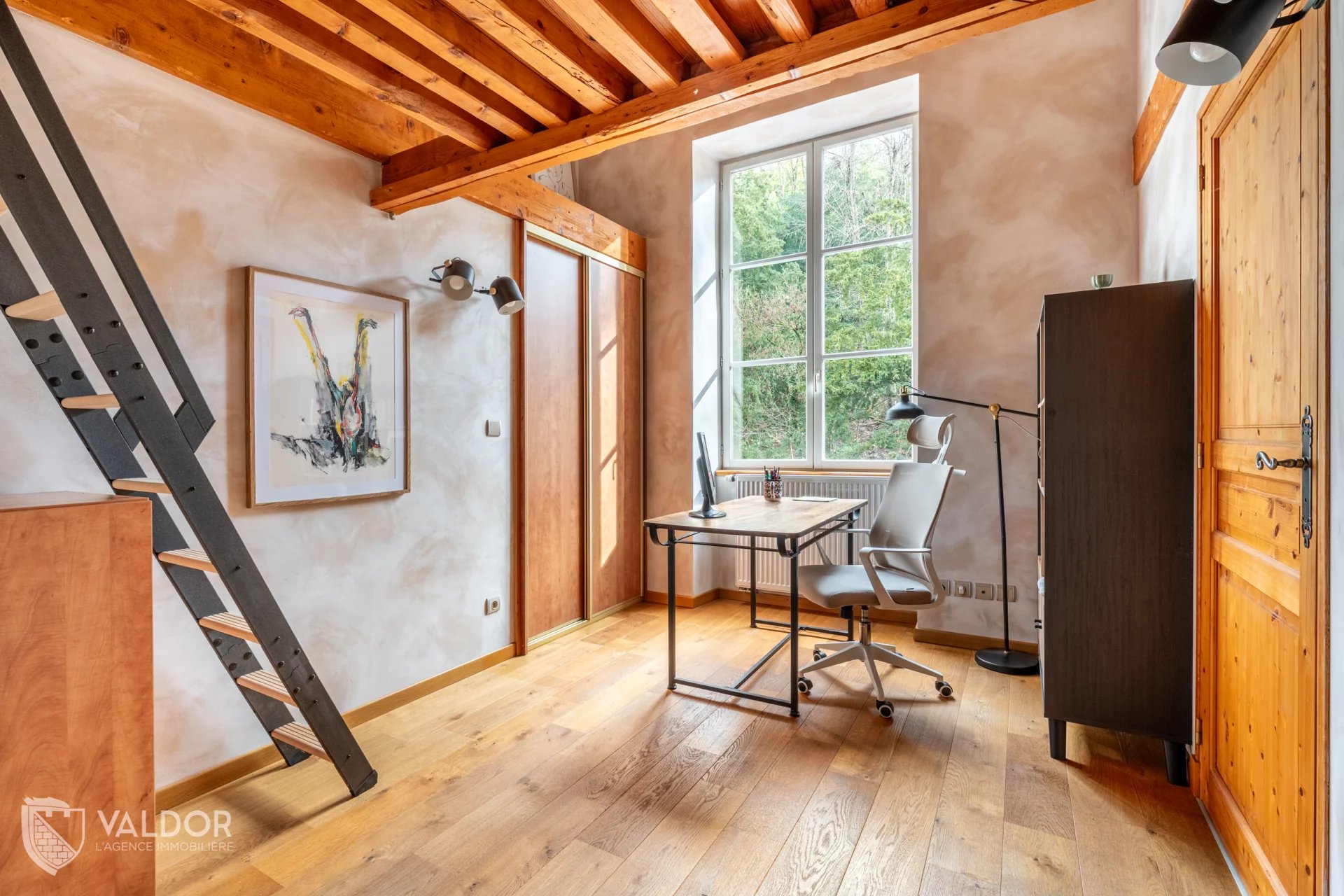 EXCLUSIVITE VALDOR JASSANS Au sein d’une copropriété de caractère, découvrez un appartement avec cachet situé au premier étage, il se compose d’un hall d’entrée, d’une chambre pouvant aménagée en suite parentale grâce à son accès direct à la salle d’eau et à son dressing, d’une seconde chambre avec mezzanine offrant diverses possibilités d’aménagement, ainsi que d’une pièce de vie lumineuse avec cuisine ouverte et un espace cellier buanderie. Une place de stationnement et une cave viennent compléter ce bien.