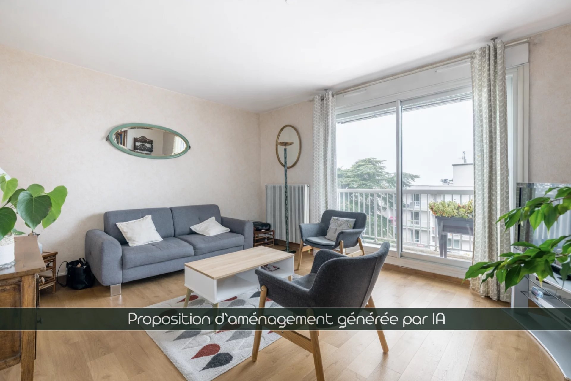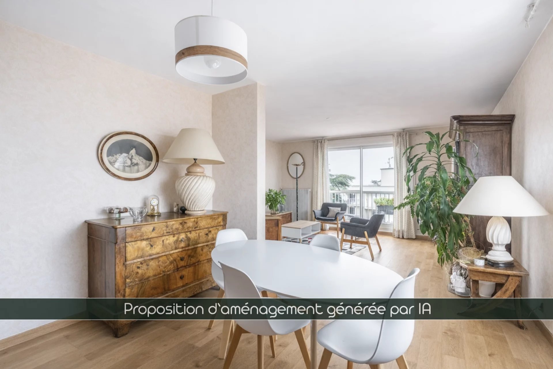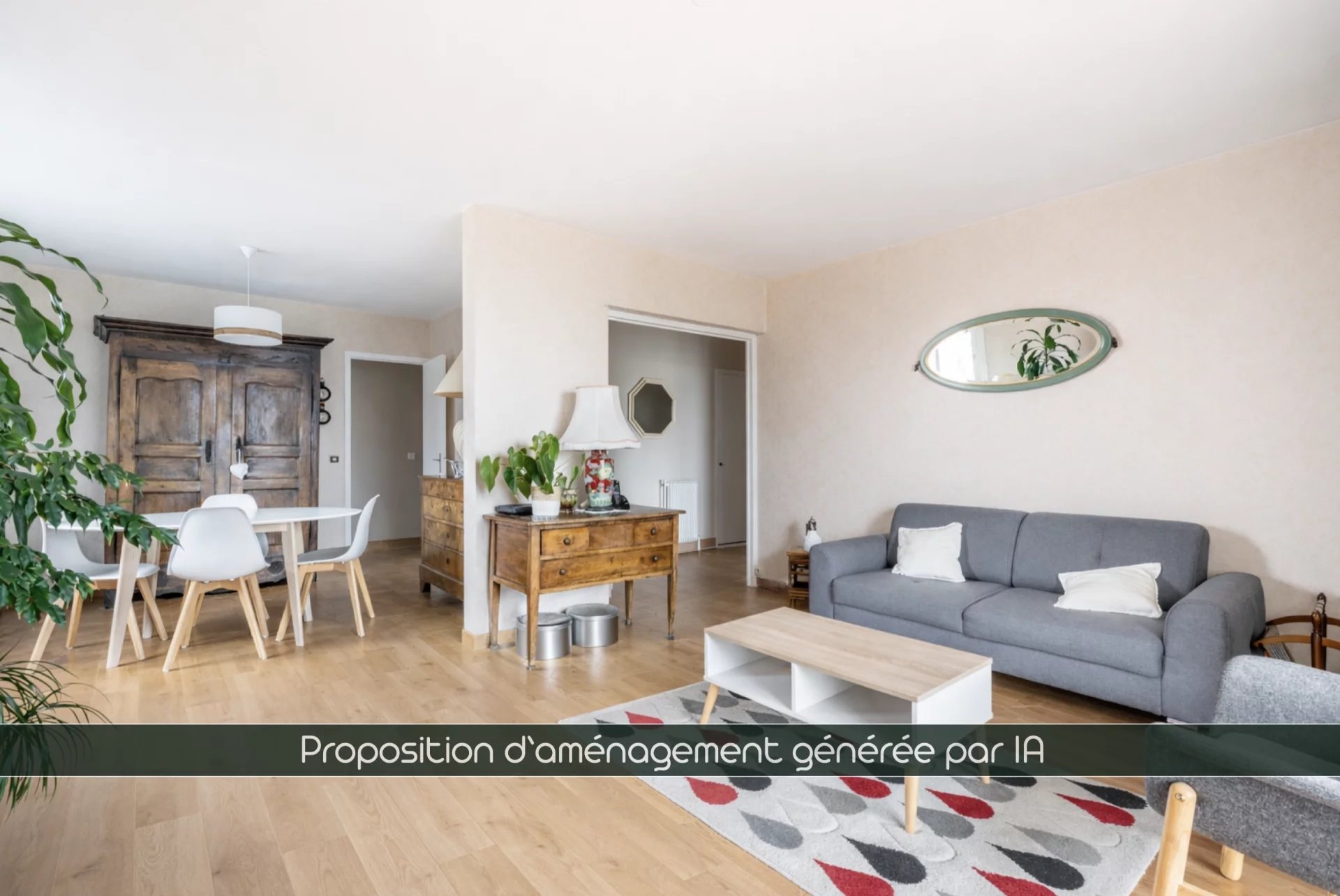 *** proposition d'aménagement avec le remplacement du carrelage d'origine par du parquet (généré par l'IA)***