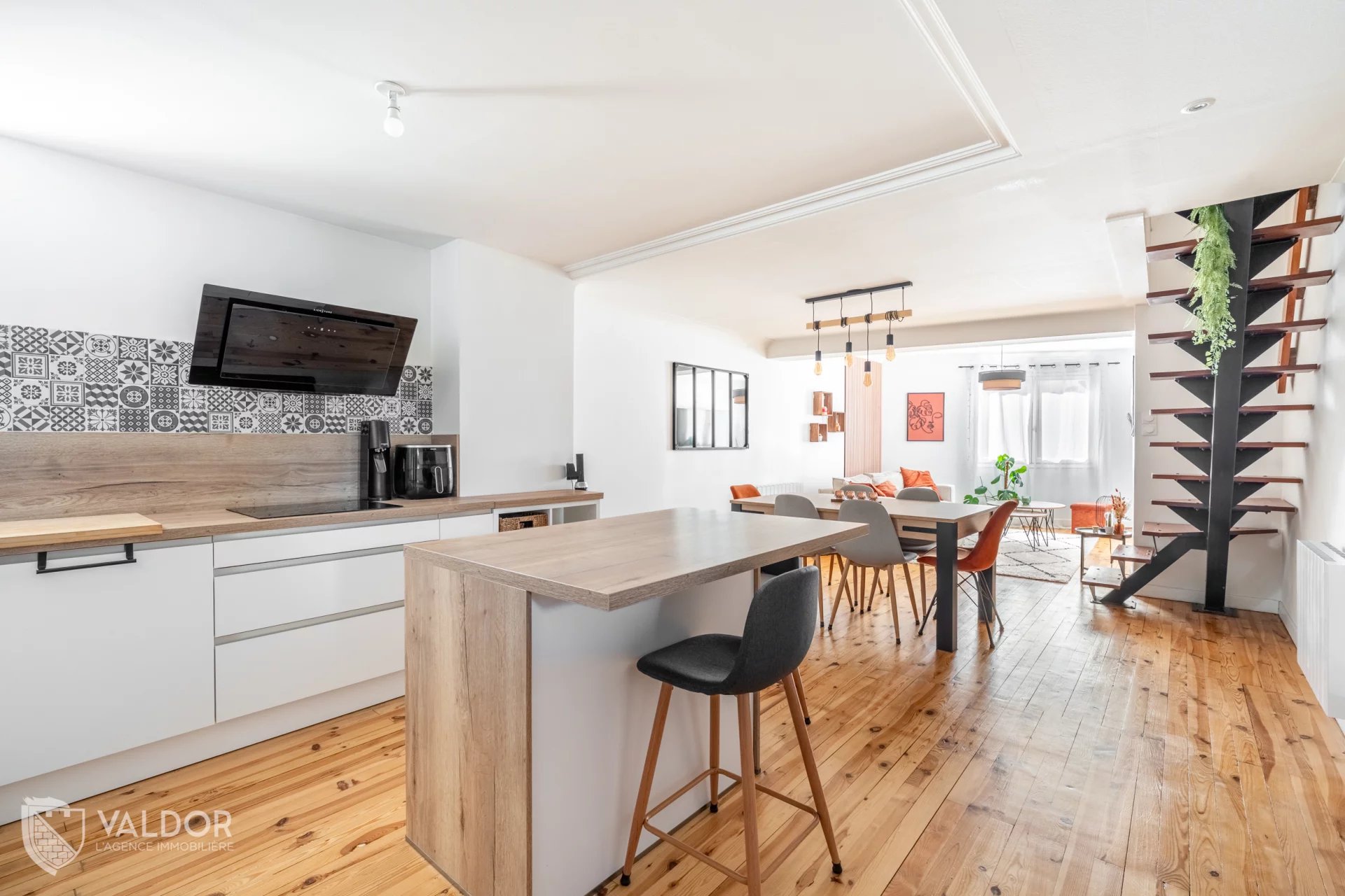 Environ 105 m² habitables, dont 82,2 m² loi Carrez, organisés sur deux niveaux d’habitation en duplex.