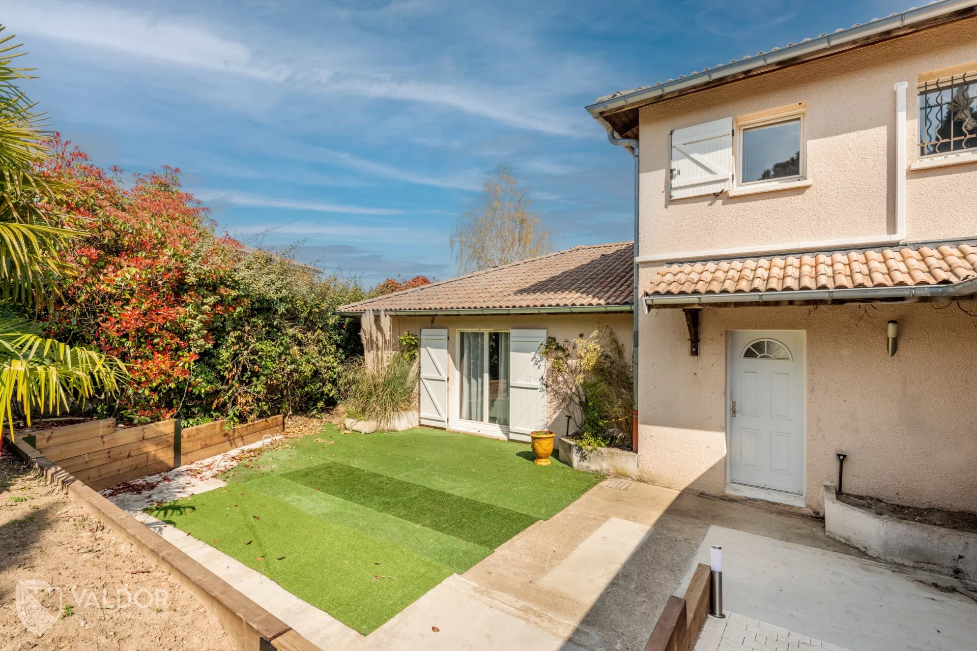 Le jardin a récemment fait l’objet d’un réaménagement complet, avec un gazon actuellement en cours de plantation.