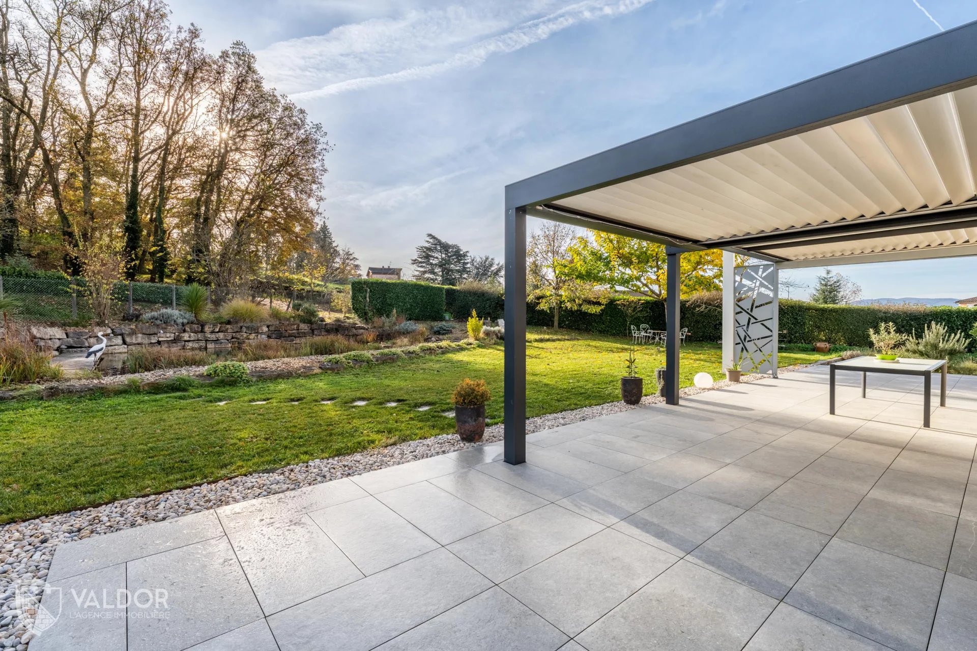 L'espace loisir extérieur, affranchi de tous vis-à-vis, est composé d'un jardin paysager et agrémenté d'une piscine naturelle ou bassin de baignade écologique, à contempler depuis les terrasses sud-est ombragées par 2 pergolas bioclimatiques, dans un environnement aussi calme que luxuriant.