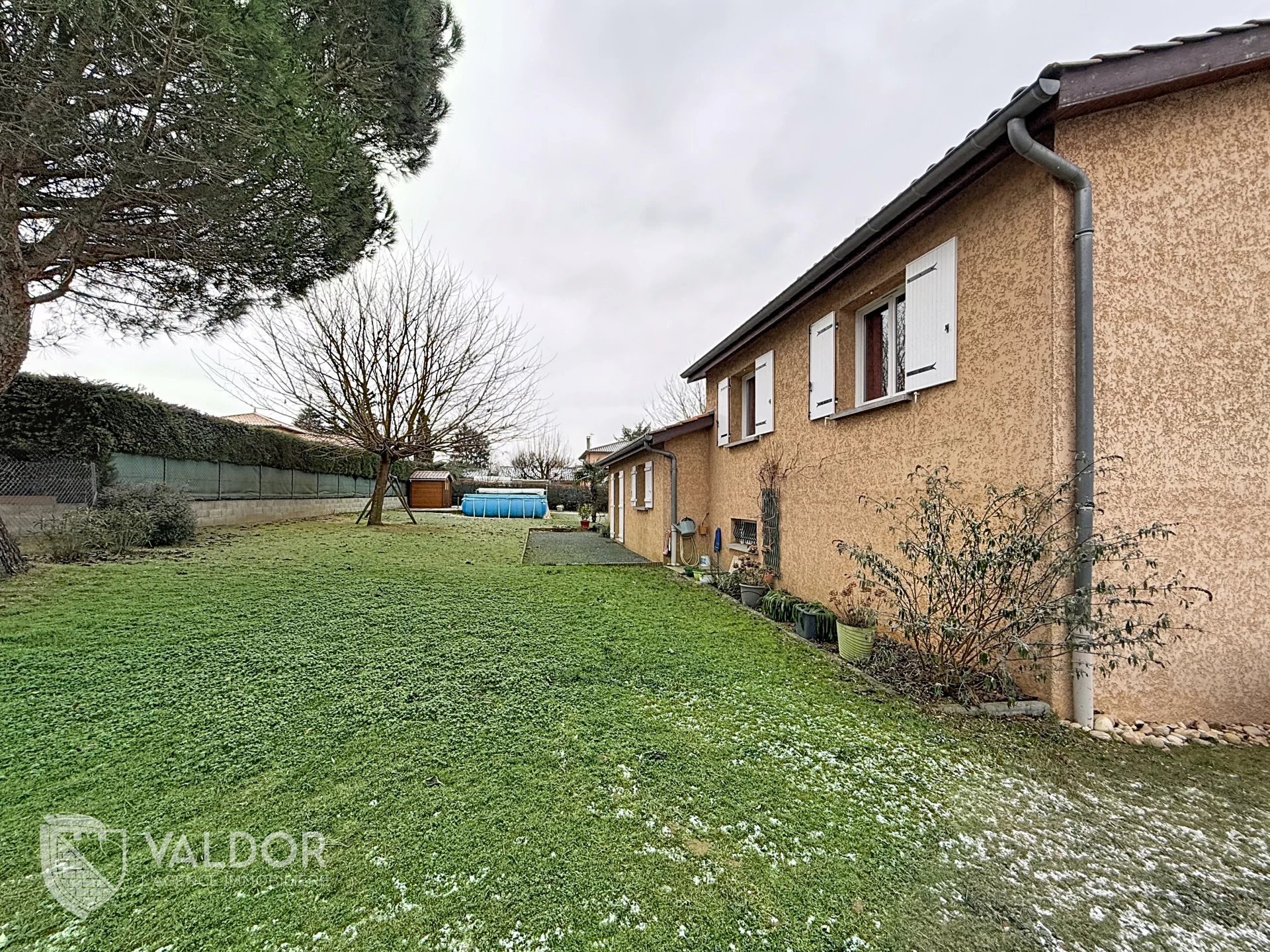 Édifiée sur un terrain clos et arboré de 1 568 m², entièrement piscinable, elle offre un cadre de vie idéal pour profiter pleinement des beaux jours.