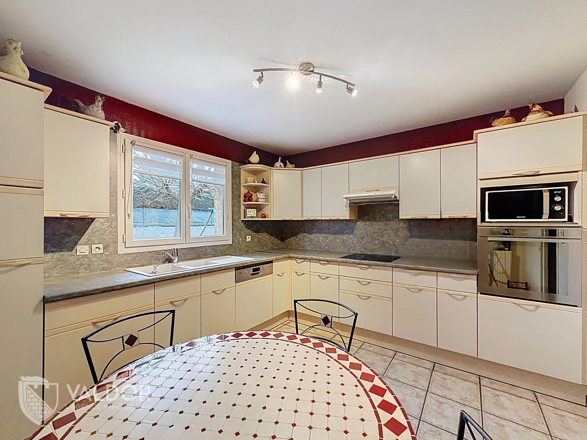 La maison, construite sur demi-niveaux, se compose d’une belle pièce de vie lumineuse, d’une cuisine fonctionnelle, ainsi que de quatre chambres, permettant d’accueillir toute la famille ou d’aménager un espace bureau.